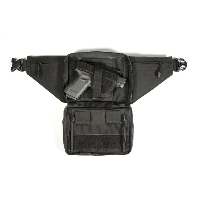 This discreet fanny pack design allows you to carry "hidden in plain sight" thanks to an internal, fully adjustable universal holster with thumb break.