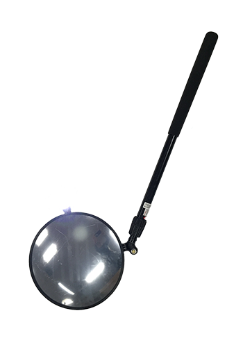 The Series SSP-054 is the Salient Mirrors economical lightweight telescoping pole with wheels for under vehicle searching with a Fenix MC11 LED Flashlight attached 90 Degrees on the mirror. The flashlight may be replaced with an optional clip for a D cell flashlight. This series allows easy access under vehicles with a low clearance of 2-1/2”.