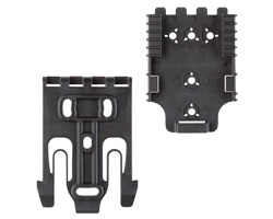 The QUICK-Kit2 includes one each of the QLS 19 Locking Fork and QLS 22L Receiver Plate components. Constructed of injection molded nylon, the receiver plate can be attached at different angles according to user preference. The QLS (Quick Locking System) allows for quick transfer of gear between attachment points such as a belt loop, tactical leg shroud or other stable platform. The QLS fork and plate combination passes the Level I Retention™ pull test. Allows users to rearrange gear quickly and easily without the use of tools. Hardware and Allen wrench included. Available in Black, Foliage Green, OD Green or Coyote. |