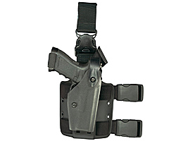 Features the SLS (Self Locking System) rotating hood system. SLS allows for a smoother, single-motion draw and greater protection against attempted weapon takeaways. Thermal-molded SAFARI-LAMINATE construction protects handgun and sights. The Safariland 6005 holster has a standard double leg strap and leg shroud with mounting holes for optional accessories.