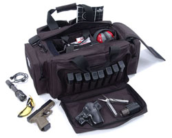 Constructed from durable, all-weather 600D nylon, the Range Ready™ Bag features seperates padded storage for multiple pistols, a zip-down front organizer that effectiviely stores 8 magazines, side pockets, a removable ammo tote to keep you topped off, and a removable brass tote for easy cleanup. With a padded should strap, easy-grip handles, and an ID insert, you'll be home on the range in no time.