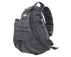 The single shoulder design allows faster on-and-off, particularly over LBV and body armor and are superior to backpacks in terms of balance and comfort when using a single strap. While there are other "messenger" bags on the market, Maxpedition promises a much more durable product with all the bells and whistles needed for life on the battlefield and in everyday urban use. You can expect the Maxpedition quality and "thoughtfulness" you have come to depend upon and love. The Monsoon GearSlinger is our large size single shoulder pack with over 1600 total cu. in. of total capacity. The quick release padded non-slip shoulder strap has two separate sets of PALS webbing for attachment of accessories. Based on a triangular design, the main compartment contains numerous internal accessory pockets. There is a small internal pocket for iPod or Walkman with rubberized head-phone port. Contents are protected by a padded front cover which is secured by a locking 2" Q.R. buckle while contents are secured by two criss-crossed compression straps. On one side there are three rows of PALS webbing over a flat concealed pocket while the other side sport a water bottle pocket capable of holding a 32oz/1L Nalgene. A 1.5" adjustable waist strap provides additional support and security; this waist strap can be stowed away in a built-in small elastic pocket. There are drain hole grommets throughout and three high airflow islands to keep your back cool. The Monsoon is compatible with hydration system up to 100oz/3L reservoir (e.g. Camelbak HotShot). The hydration pocket is also equipped with loop side Velcro for attachment of of our Hook & Loop Modular Accessories such as #3501 Universal Modular Holster.