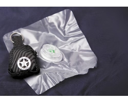 Patented "Free Floating" one-way valve allows more air-flow to the victim and helps protect the rescuer from unsafe mouth-to-mouth contact. Micro-Pouch CPR Kit contains a CPRotector and comes with a key ring and belt loop.