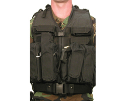 The D.O.A.V. Assault Vest System offers unparalleled storage options. The front features multiple sewn-on patches, including four M16/M4 pouches that hold three magazines each, three utility/flashbang pouches and a side utility pouch. Two large daypacks are also included, and attach to the vest via multiple rows of S.T.R.I.K.E.® webbing on the back.
